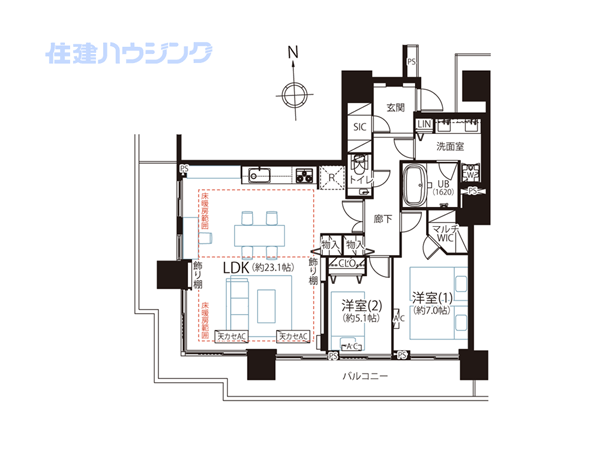 LDK23.1帖:洋室7帖:洋室5.1帖